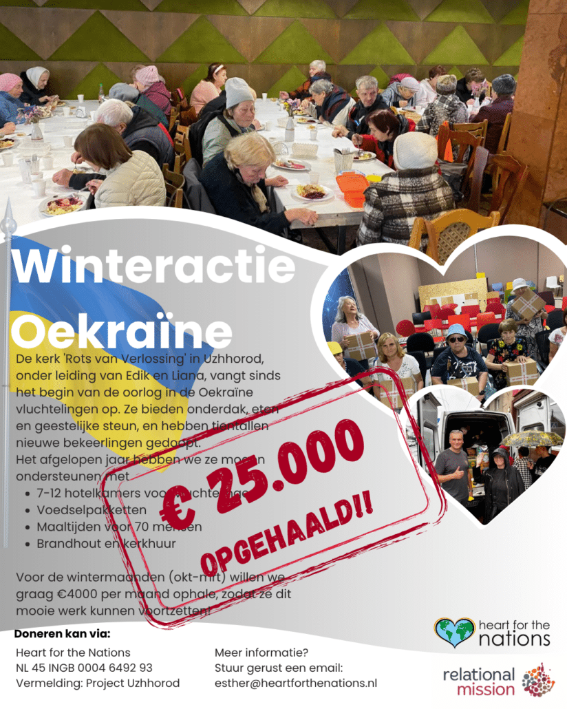 Onze winteractie heeft maar liefst €25.000 opgeleverd en we hebben het werk met de vluchtelingen in Oekraine met €4.000 per maand mogen ondersteuenen. Grote dank aan een ieder die hieraan heeft bijgedragen!